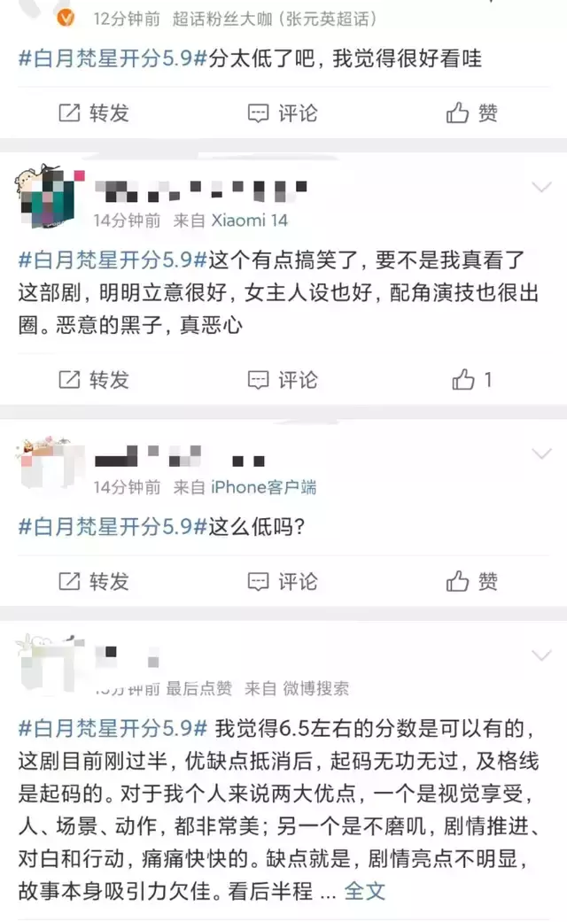 好消息是同期对打火热的《国色芳华》和《白月梵星》豆瓣开分,坏消息是豆瓣开分不及预期,一个开分7.8分,一个开分5.9分,广场上评论区皆是双双破防的声音。