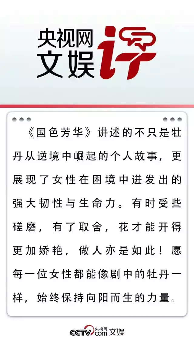 当然《国色芳华》高开高走,无论是服化道场景台词都具有真才实学可以考究的程度,很多细节都有含金量,是一部具有文化价值的剧,剧中牡丹和中国传统技艺相结合,肉眼可见的大格局,出现的“细糠”值得细品。